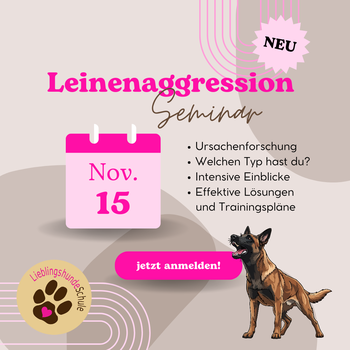 Dieses Seminar ist ein Theorie-Vortrag – dein Hund bleibt also entspannt zuhause, während du das nötige Wissen tankst, um danach gezielt trainieren zu können. Wir sind auf Leinenaggression spezialisiert und geben dir einen klaren, ehrlichen und praxisnahen Einblick in alle wichtigen Aspekte dieses Themas. Mach den ersten Schritt zu entspannteren Spaziergängen – wir freuen uns auf dich!
